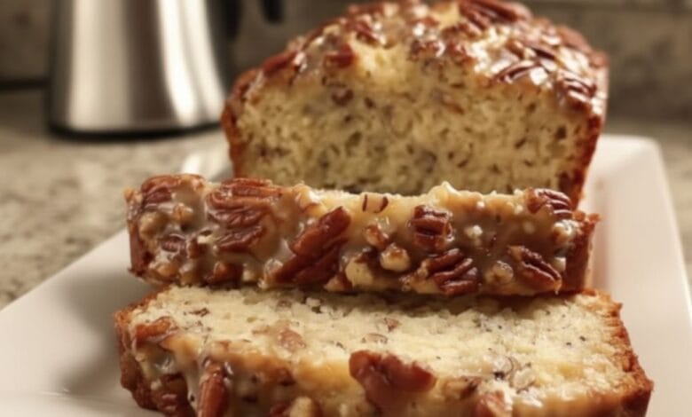 Because the recipe calls for minimal leavening, the bread has a dense, moist crumb — similar to a pecan blondie baked into loaf form. This makes every slice feel indulgent, even without frosting or glaze.