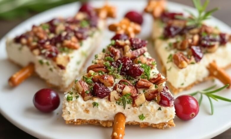 One of the best things about these appetizers is that they can be made a day ahead. Simply prepare the crust, creamy layer, and toppings, then chill everything. When you’re ready to serve, cut the mixture into tree shapes, add the pretzel sticks, and garnish with rosemary. This makes them an easy option for busy holiday hosts who want to spend less time in the kitchen and more time with their guests.
