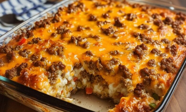 Packed with flavorful ground beef, tender rice, creamy mushroom soup, and melty cheddar cheese, this casserole brings together classic comfort-food ingredients into one irresistible dish. Let’s dive into why this recipe belongs in your weekly dinner rotation, plus a detailed walkthrough to help you make it perfectly every time.