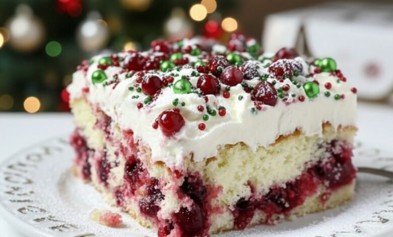 There are certain desserts that feel like the holidays the moment you see them, and this Christmas Cranberry Poke Cake is definitely one of them. It’s bright, festive, incredibly easy to make, and bursting with that sweet-tart cranberry flavor that pairs perfectly with fluffy white cake. If you’re looking for a dessert that delivers major Christmas vibes without needing hours in the kitchen, this poke cake is the perfect choice.