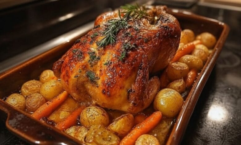When it comes to holiday dinners, nothing beats the comfort and beauty of a perfectly roasted chicken. This Honey-Roasted Chicken with Potatoes & Carrots is golden, juicy, and glazed with a buttery honey-herb coating that feels festive yet comforting. Best of all, it’s a one-pan dinner where the vegetables roast underneath the chicken, soaking up every drop of savory-sweet flavor.