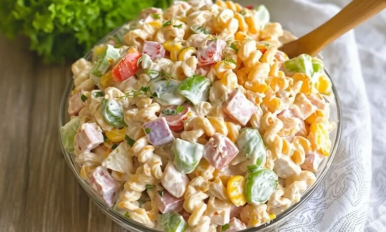 This salad gets even better as it chills. The flavors deepen, the pasta absorbs the dressing, and everything comes together beautifully.