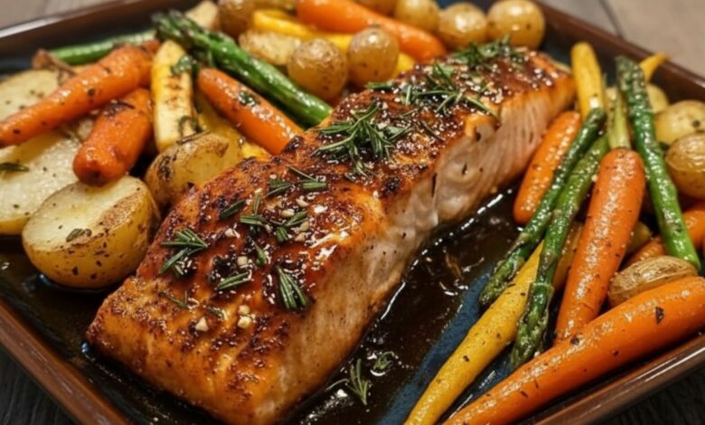 Easy Honey Garlic Salmon Bake with Oven-Roasted Vegetables