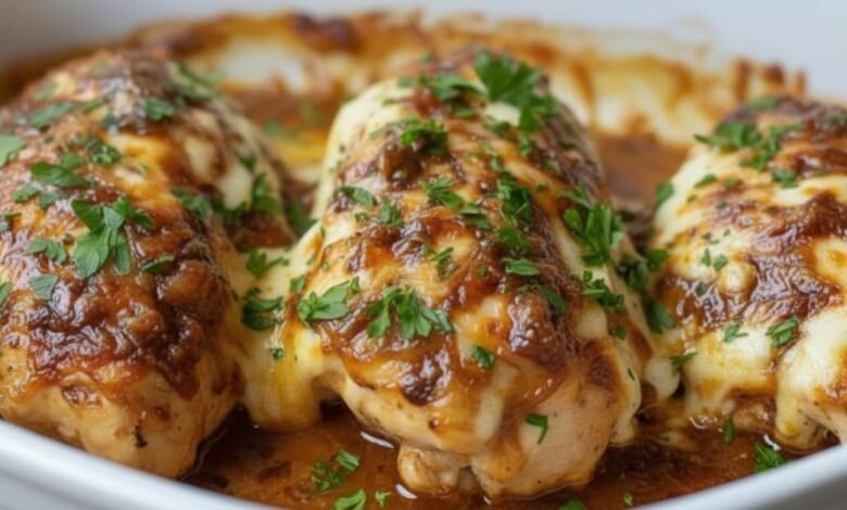 This recipe takes everything we adore about French onion soup—the sweetness of caramelized onions, the savory depth of beef stock, the irresistible richness of melted cheese—and merges it with juicy, seasoned chicken. It’s simple enough for a weeknight, special enough for guests, and shockingly easy to pull together with everyday ingredients.