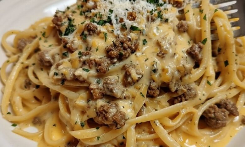 There are some recipes that instantly feel like comfort food classics the moment they hit the table, and Garlic Butter Beef Linguine in Creamy Parmesan Sauce is one of them. This dish brings together tender linguine, rich garlic butter, savory ground beef, and a silky Parmesan cream sauce that coats every strand of pasta perfectly. It’s the kind of meal that feels indulgent and restaurant-worthy, yet it comes together easily in under 30 minutes—making it ideal for both busy weeknights and special family dinners.