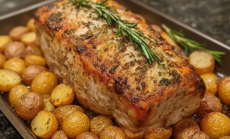 Oven-Baked Garlic & Herb Pork Loin with Golden Roasted Potatoes