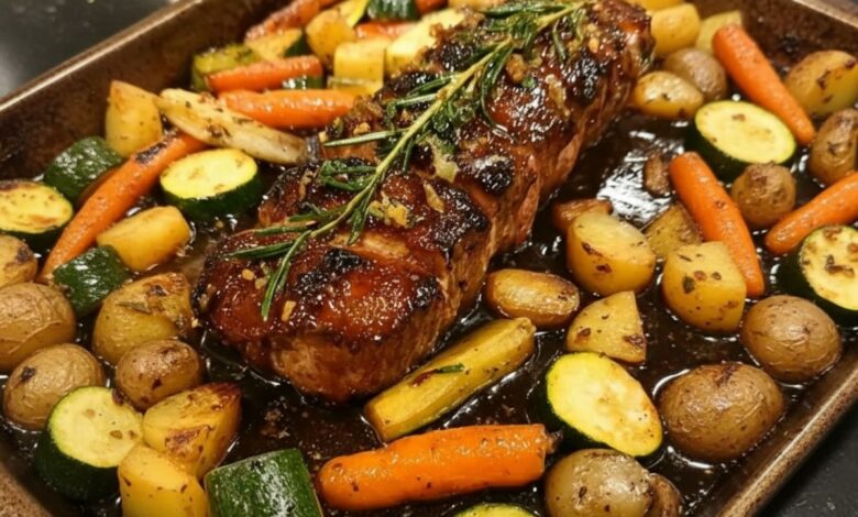 If you’re looking for a comforting dinner that feels special but doesn’t require chef-level skills, herb-roasted pork loin with vegetables is the answer. This is the kind of meal that fills your kitchen with that “Sunday roast” aroma—garlic, smoky paprika, herbs—while everything cooks together in one pan. The pork comes out tender and juicy, the vegetables roast in the pan drippings, and if you want to go one step further, a quick pan sauce makes it taste like it came from a restaurant.
