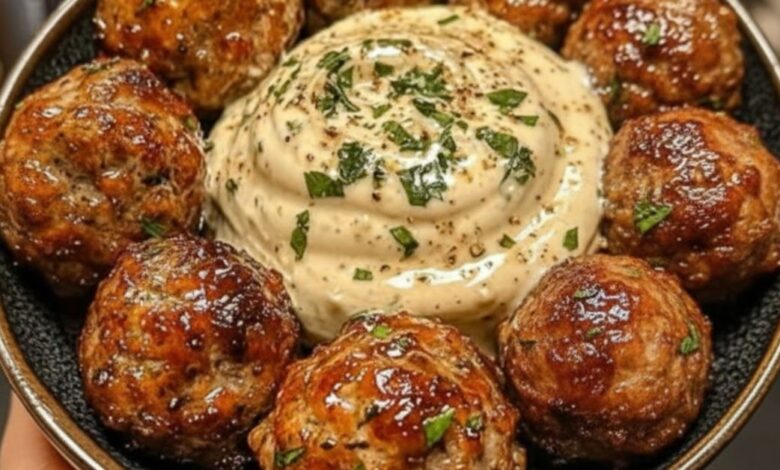 Juicy Glazed Meatballs with Creamy Herb Dipping Sauce