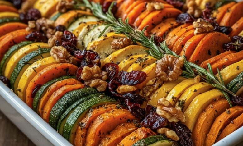 If you’re looking for a comforting yet elegant vegetable dish that feels special enough for the holidays but simple enough for a cozy weeknight dinner, this Layered Sweet Potato, Squash & Carrot Bake with Cranberry-Maple Drizzle is exactly what you need. Packed with warm spices, natural sweetness, and vibrant colors, this recipe is a celebration of seasonal vegetables at their best.